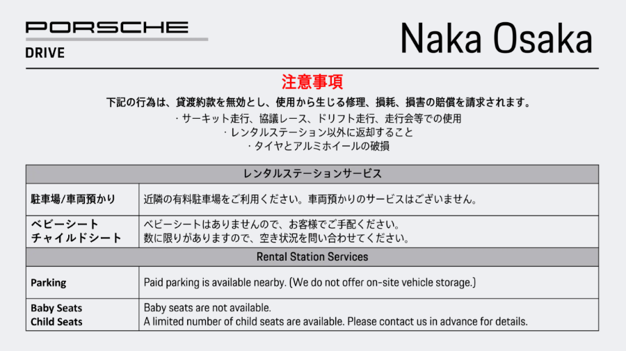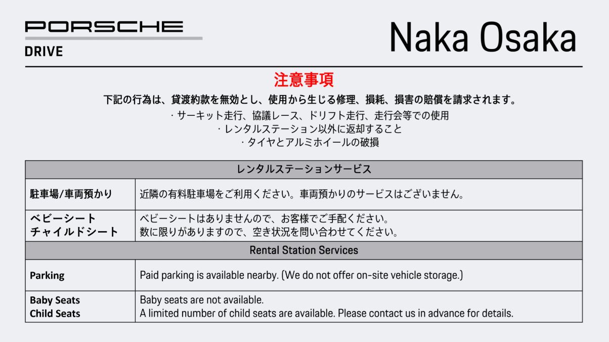 ポルシェドライブレンタル予約 Rental car