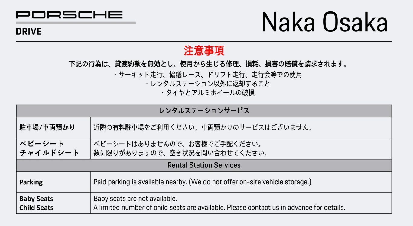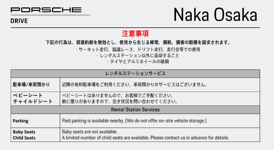 ポルシェドライブレンタル予約 Rental car