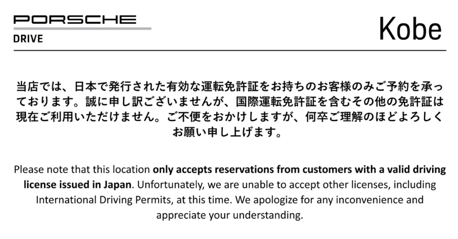 ポルシェドライブレンタル予約 Rental car